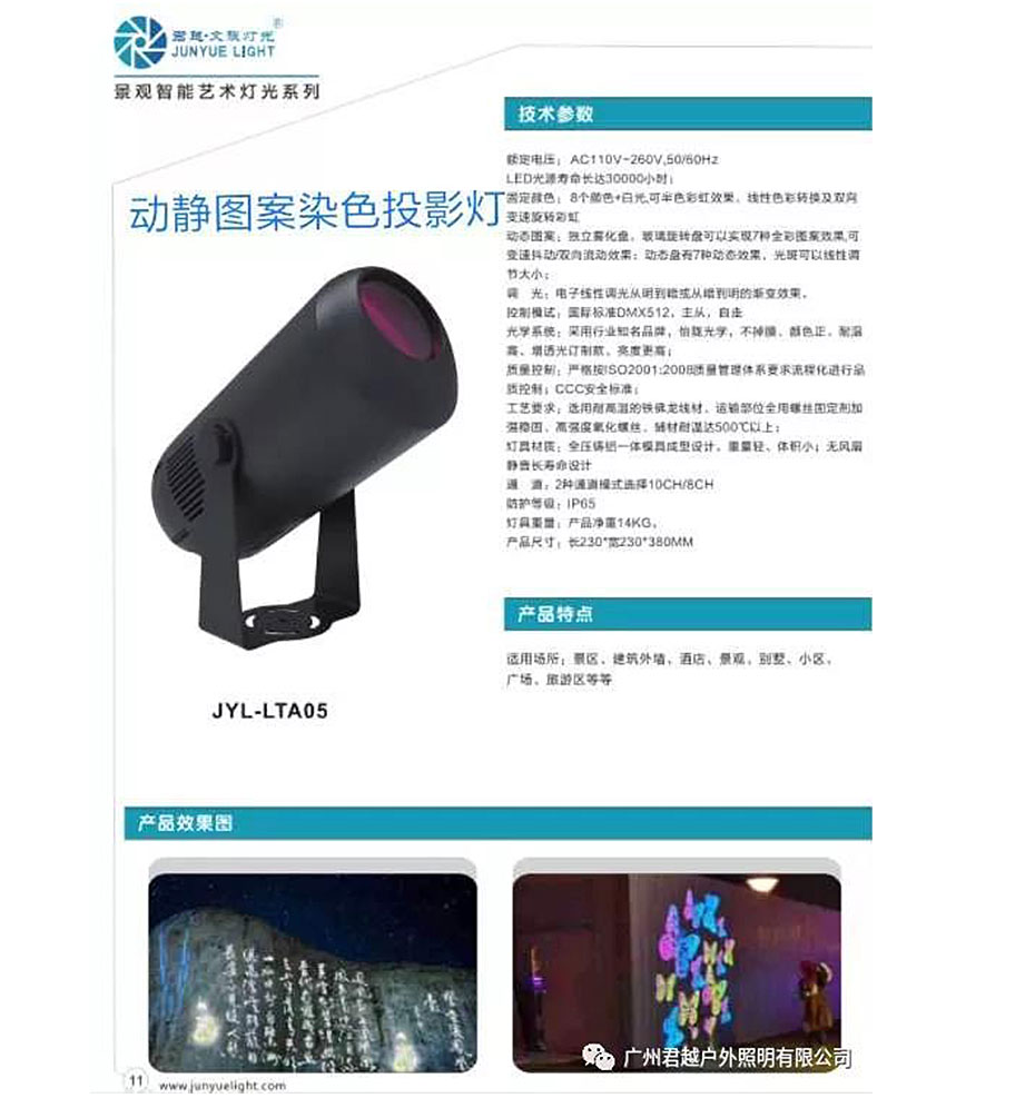 ◎動態(tài)圖案:旋轉(zhuǎn)圖案盤6個旋轉(zhuǎn)玻璃圖案片+白光,可以訂制客戶要求LOGO,可變速抖動/雙向流動效果,圖案索引功能及16Bit精確微調(diào),