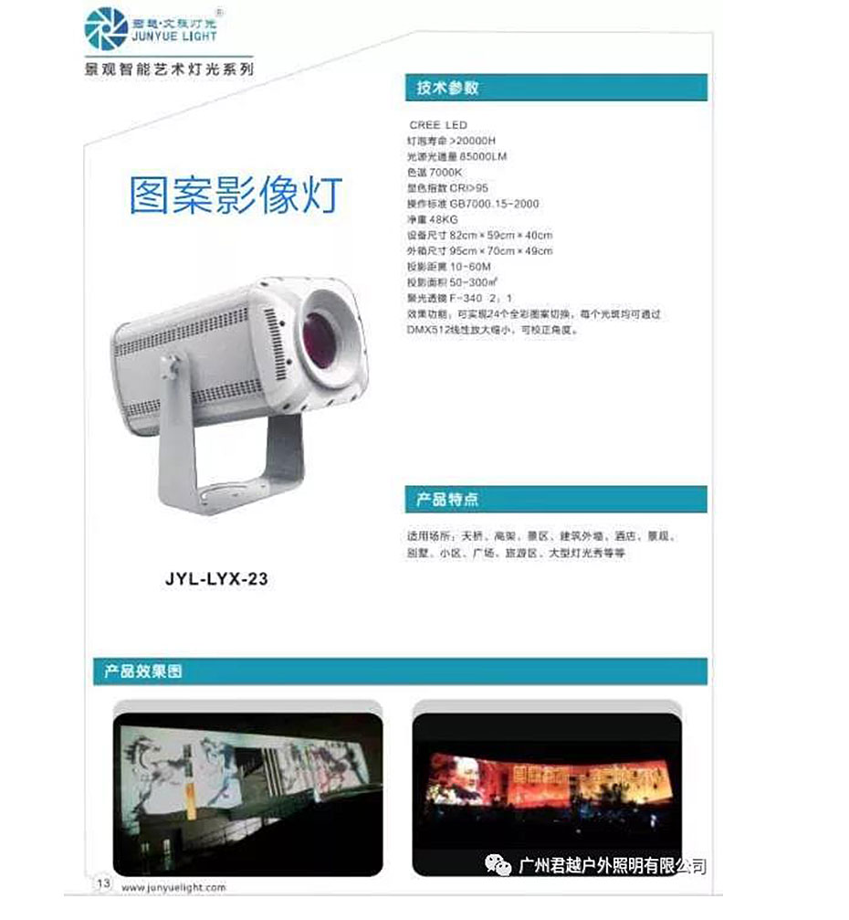 ◎靜態(tài)圖案:固定圖案盤18+1固定圖案,圖案抖動效果 ,可變速抖動/雙向流動效果,所有固定圖案和旋轉(zhuǎn)圖案均能實現(xiàn)線性無極放大縮小功能,達到一個圖案可以蓋住一面墻;