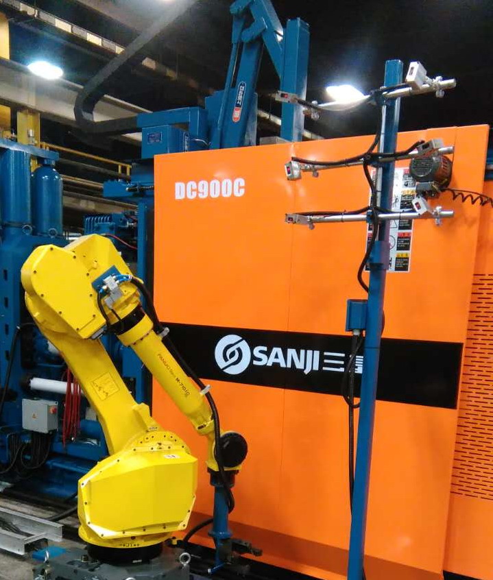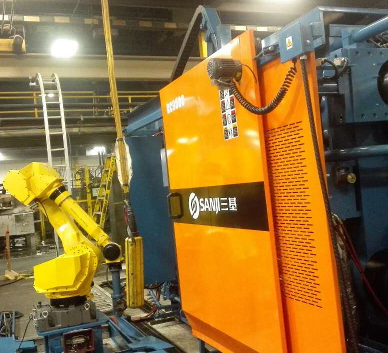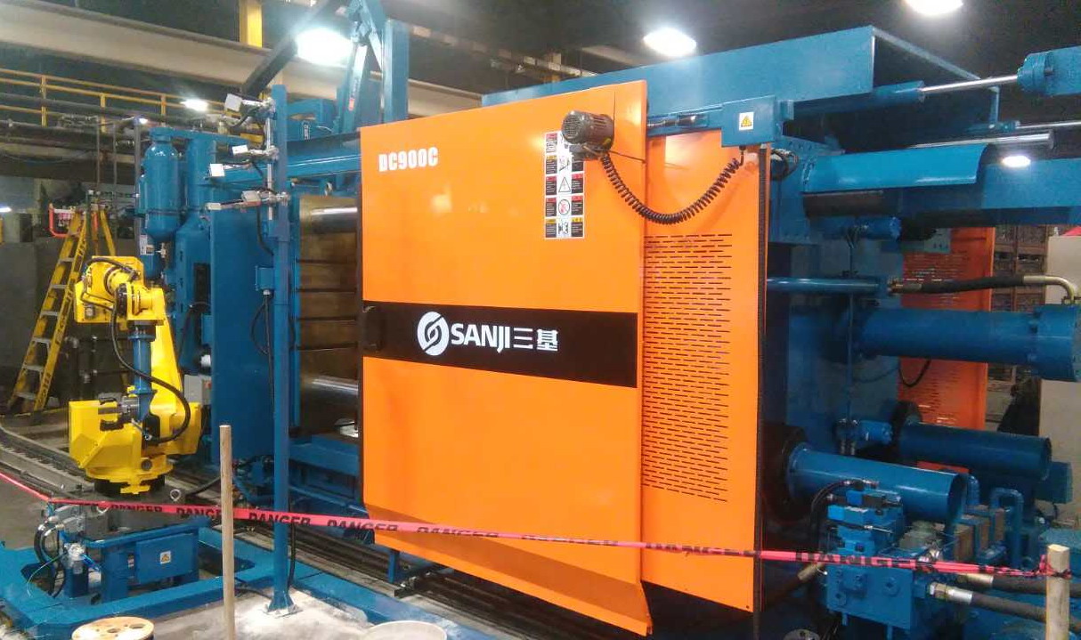 蘇州三基依照美國的UL認(rèn)證安全要求設(shè)計了歐美版臥式冷室壓鑄機(jī)系列產(chǎn)品,該產(chǎn)品在電氣控制系統(tǒng)、液壓油路、合模系統(tǒng)、機(jī)座系統(tǒng)等方面進(jìn)行了全新設(shè)計,合模機(jī)構(gòu)的模板、曲肘系統(tǒng)全部采用鑄鋼件,大大提高了壓鑄機(jī)的整體剛性。其中900噸臥式冷室壓鑄機(jī)已于2016年10月份成功銷往美國市場,該設(shè)備采用AB控制系統(tǒng)和美國VTW實(shí)時控制系統(tǒng),集成了給湯機(jī)、噴霧機(jī)、取件機(jī)器人、切邊機(jī)等自動化設(shè)備,組建了一個自動化壓鑄島,用于汽車零部件的自動化生產(chǎn)。設(shè)備目前正處于安裝調(diào)試階段,將在2017年2月份正是達(dá)產(chǎn)。